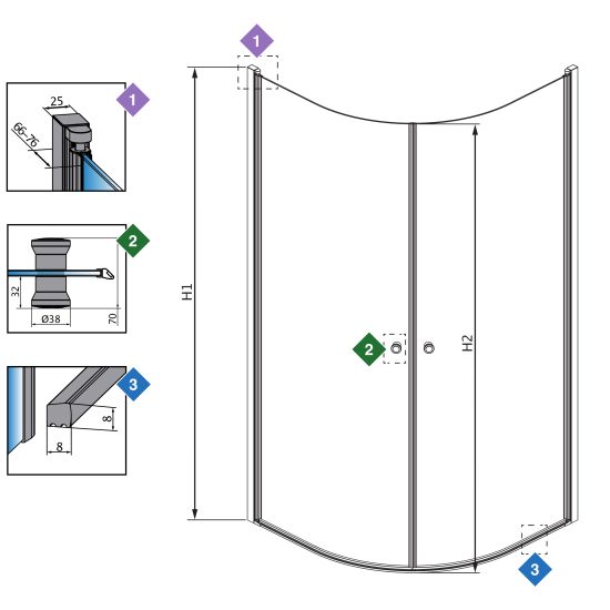 | Wymiar kabiny do osi szyby (Y): | 768-778 mm, 868-878 mm |
