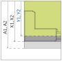 X - wymiar X1 i X2 to wymiar zewnętrzny kabiny (licząc od ściany do zewnętrznego obrysu profilu, zawiasu lub klamry). Jeśli chcesz, aby zewnętrzna krawędź profilu, zawiasu lub klamry kabiny była zamontowana na krawędzi płytek/fudze weź pod uwagę ten wymiar.