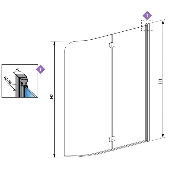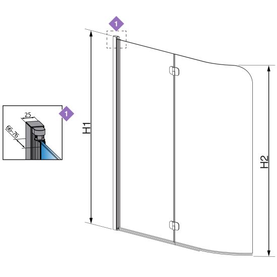 | Wysokość parawanu (H2): | 1500 mm |