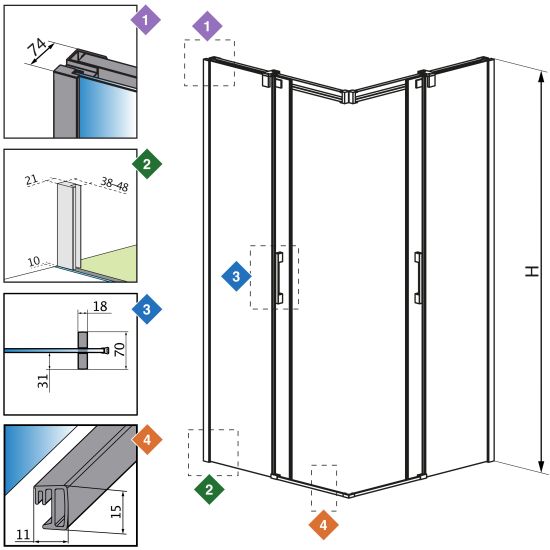 W standardzie z kabiną otrzymują Państwo wszystkie komponenty potrzebne do montażu kabiny prysznicowej zarówno z listwą progową jak i bez listwy. Dzięki temu istnieje możliwość uzyskania bezprogowego dostępu do kabiny, co jest szczególnie istotne w przypadku, gdy z kabiny będą korzystały również osoby niepełnosprawne. Szczegółowe informacje znajdują się w instrukcji montażu.