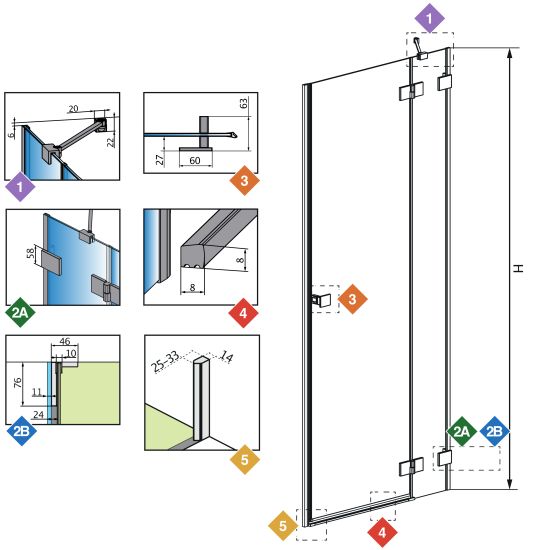 | Szerokość ścianki drzwi (C): | 257-265 mm, 357-365 mm, 457-465 mm |