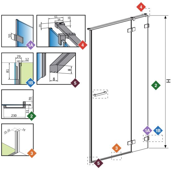 | Szerokość ścianki drzwi (C): | 260-270 mm |