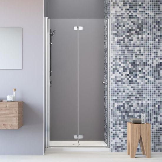 Drzwi prysznicowe z kolekcji Fuenta to modele z drzwiami składanymi, charakteryzujące się bardzo wysoką jakością wykonania. Wyróżniają się eleganckimi, chromowanymi okuciami o owalnym kształcie, nowoczesnymi zawiasami oraz doskonałym stosunkiem jakości do ceny.