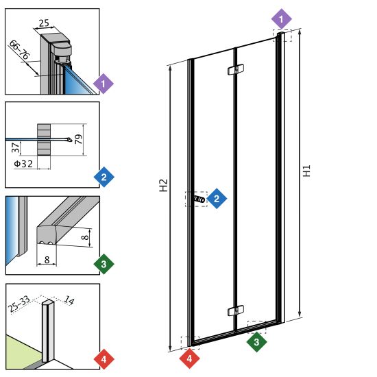 | Szerokość wnęki : | 787-805 mm, 887-905 mm, 987-1005 mm |