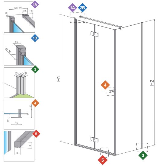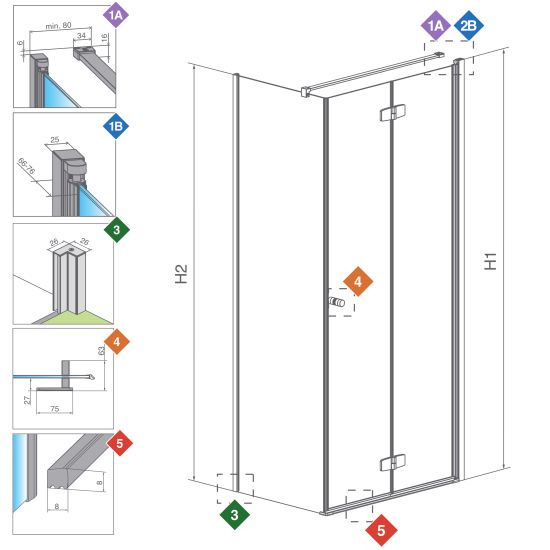 | Wymiar zewnętrzny kabiny (X2): | 1080-1095 mm, 1180-1195 mm, 680-695 mm, 730-745 mm, 780-795 mm, 880-895 mm, 980-995 mm |
