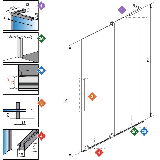 | Szerokość ścianki drzwi (C): | 453-463 mm, 503-513 mm, 553-563 mm, 603-613 mm, 653-663 mm |