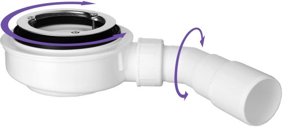 Budowa Radaway umożliwia niezwykle łatwe, wielokierunkowe pozycjonwanie syfonu w celu łatwego podłączenia do pionu kanalizacyjnego i ustawienia odpowiedniego spadu wody. Syfon można obracać zarówno w osi względem brodzika jak i regulować kąt kolanka przyłączeniowego względem całego syfonu. Takie rozwiązanie znacząco ułatwia pracę instalatora, pozwalając na szybkie i precyzyjne dostosowanie syfonu do indywidualnych warunków montażowych, nawet w trudnych lub ograniczonych przestrzeniach.