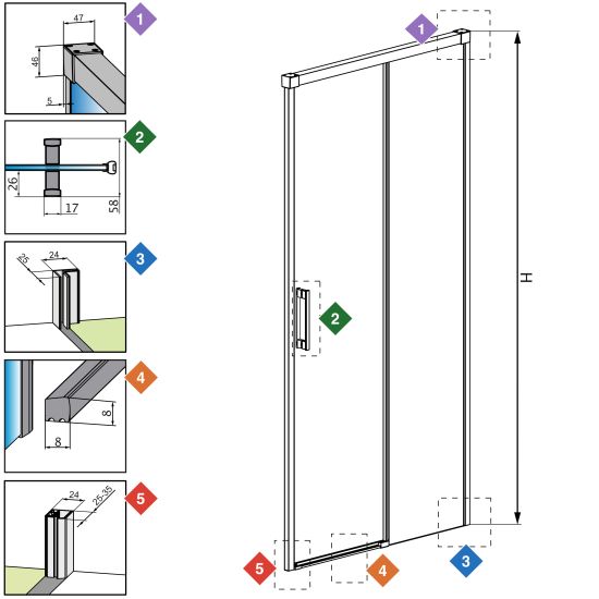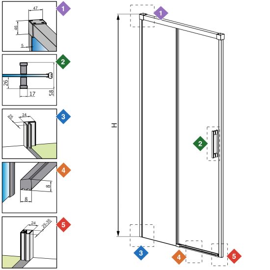 W standardzie z kabiną otrzymują Państwo wszystkie komponenty potrzebne do montażu kabiny prysznicowej zarówno z listwą progową jak i bez listwy. Dzięki temu istnieje możliwość uzyskania bezprogowego dostępu do kabiny, co jest szczególnie istotne w przypadku, gdy z kabiny będą korzystały również osoby niepełnosprawne. Szczegółowe informacje znajdują się w instrukcji montażu.
