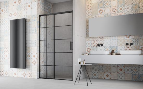 Kolekcja Idea Black jest linią czarnych kabin prysznicowych z ukrytym system przesuwu drzwi opartym wyłącznie na torze górnym, który świetnie sprawdza się, gdy zależy nam na łatwym dostępie do wnętrza prysznica. Charakteryzuje się czarnym wykończeniem o matowej strukturze oraz stabilną konstrukcją.