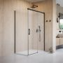 Kolekcja Idea Black jest linią czarnych kabin prysznicowych z ukrytym system przesuwu drzwi opartym wyłącznie na torze górnym, który świetnie sprawdza się, gdy zależy nam na łatwym dostępie do wnętrza prysznica. Charakteryzuje się czarnym wykończeniem o matowej strukturze oraz stabilną konstrukcją.
