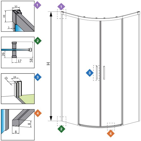 Kabina wyposażona została w szkło hartowane o grubości 6mm, które charakteryzuje się zwiększoną wytrzymałością mechaniczną oraz większą odpornością na różnice temperatur od zwykłego szkła. Ponadto szkło hartowane jest bezpieczne w użytkowaniu – przy rozbiciu rozpada się na drobne kawałeczki o nieostrych krawędziach. Dzięki temu, Ty i Twoja rodzina możecie czuć się bezpiecznie korzystając z kabiny Radaway.
