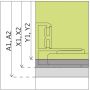 X - wymiar X1 i X2 to wymiar zewnętrzny kabiny (licząc od ściany do zewnętrznego obrysu profilu, zawiasu lub klamry). Jeśli chcesz, aby zewnętrzna krawędź profilu, zawiasu lub klamry kabiny była zamontowana na krawędzi płytek/fudze weź pod uwagę ten wymiar.