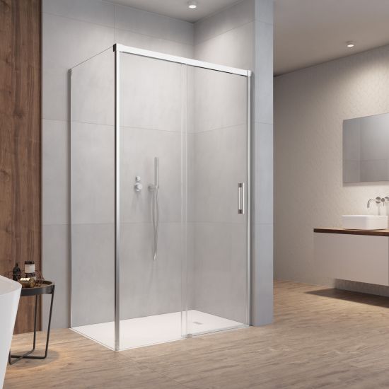 Kolekcja Idea jest linią kabin prysznicowych z ukrytym system przesuwu drzwi opartym wyłącznie na torze górnym, który świetnie sprawdza się, gdy zależy nam na łatwym dostępie do wnętrza prysznica. Charakteryzuje się prostą formą, stabilną konstrukcją oraz eleganckimi chromowanymi detalami.