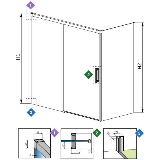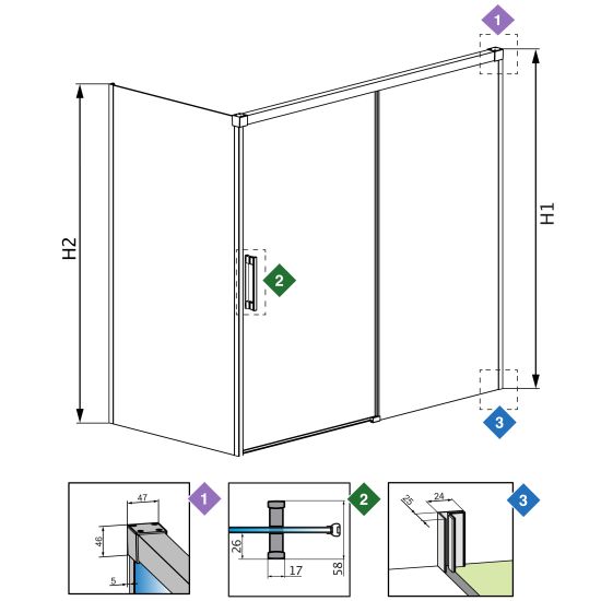 | Wymiar do osi szyby (Y1): | 1380-1395 mm, 1480-1495 mm, 1580-1595 mm, 1680-1695 mm, 1780-1795 mm |