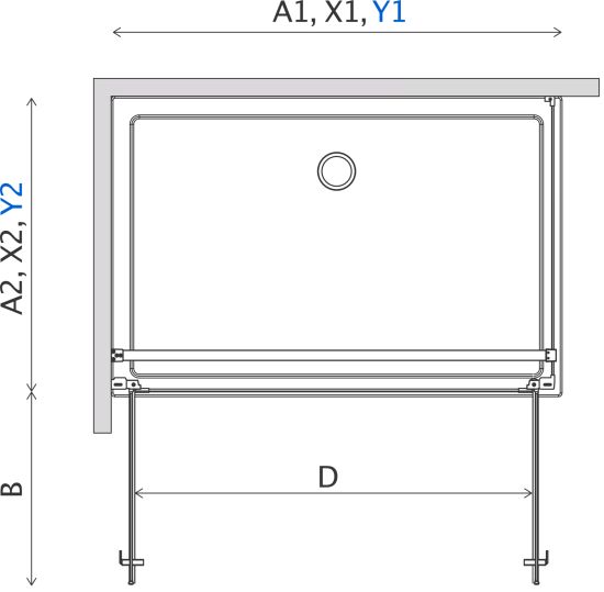 | Wymiar kabiny do osi szyby (Y1): | 1070-1085 mm, 1170-1185 mm, 770-785 mm, 870-885 mm, 970-985 mm |