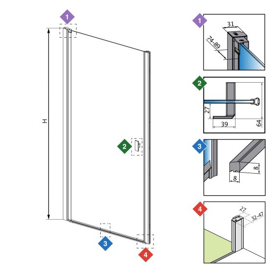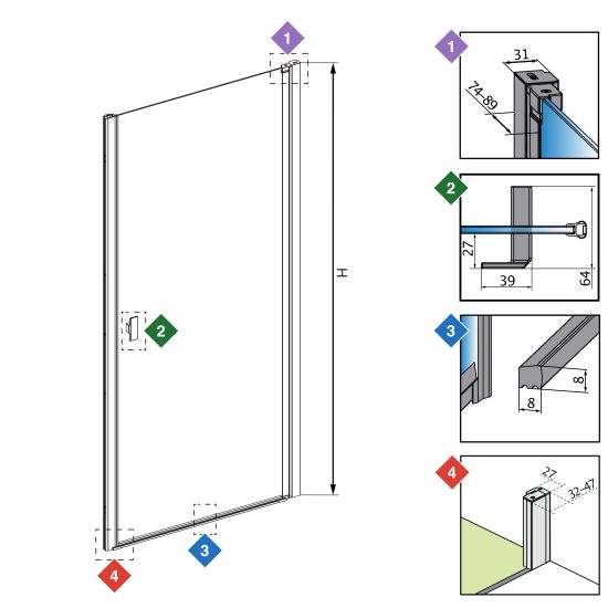 | Szerokość wnęki : | 680-710 mm, 780-810 mm, 880-910 mm, 980-1010 mm |