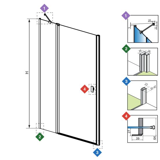 | Szerokość ścianki drzwi (C): | 230-245 mm, 330-345 mm |