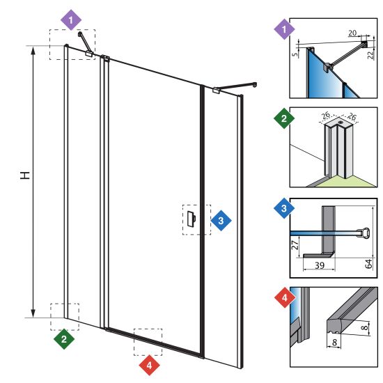 | Kolor profili i okuć: | Chrom, Czarne, GunMetal szczotkowany, Miedź szczotkowana, Nikiel szczotkowany, Złote, Złote szczotkowane |