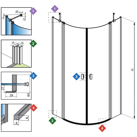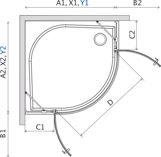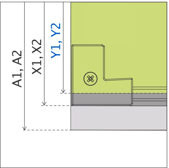 | Wymiar kabiny do osi szyby (Y1): | 770-785 mm, 870-885 mm, 970-985 mm |
