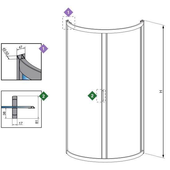 | Wysokość kabiny (H): | 1900 mm |