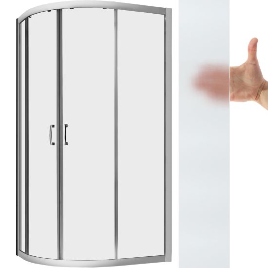 Oferowana kabina posiada szkło Fabric. Szkło tego typu jest gładkie od strony kąpielowej i posiada ornament w kształcie bardzo małych kwadracików od strony zewnętrznej, który jest wyraźnie wyczuwalny pod dłonią.