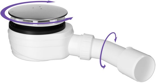 Budowa Radaway R580 umożliwia niezwykle łatwe, wielokierunkowe pozycjonwanie syfonu w celu łatwego podłączenia do pionu kanalizacyjnego i ustawienia odpowiedniego spadu wody. Syfon można obracać zarówno w osi względem brodzika jak i regulować kąt kolanka przyłączeniowego względem całego syfonu. Takie rozwiązanie znacząco ułatwia pracę instalatora, pozwalając na szybkie i precyzyjne dostosowanie syfonu do indywidualnych warunków montażowych, nawet w trudnych lub ograniczonych przestrzeniach.