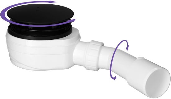 Budowa Radaway R580 umożliwia niezwykle łatwe, wielokierunkowe pozycjonwanie syfonu w celu łatwego podłączenia do pionu kanalizacyjnego i ustawienia odpowiedniego spadu wody. Syfon można obracać zarówno w osi względem brodzika jak i regulować kąt kolanka przyłączeniowego względem całego syfonu. Takie rozwiązanie znacząco ułatwia pracę instalatora, pozwalając na szybkie i precyzyjne dostosowanie syfonu do indywidualnych warunków montażowych, nawet w trudnych lub ograniczonych przestrzeniach.