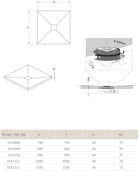 • w komplecie zdejmowana chromowana kratka odpływowa o wymiarach 98x98mm
