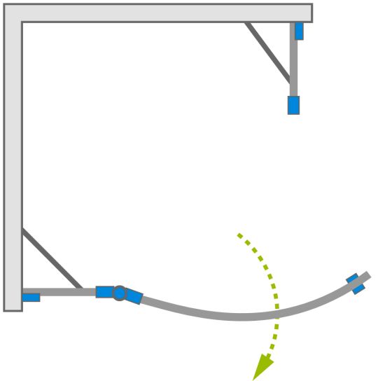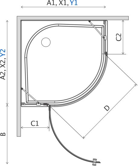 X - wymiar X1 i X2 to wymiar zewnętrzny kabiny (licząc od ściany do zewnętrznego obrysu profilu, zawiasu lub klamry). Jeśli chcesz, aby zewnętrzna krawędź profilu, zawiasu lub klamry kabiny była zamontowana na krawędzi płytek/fudze weź pod uwagę ten wymiar.
