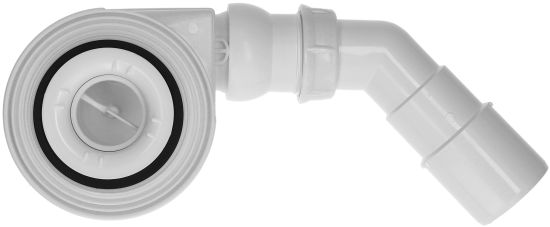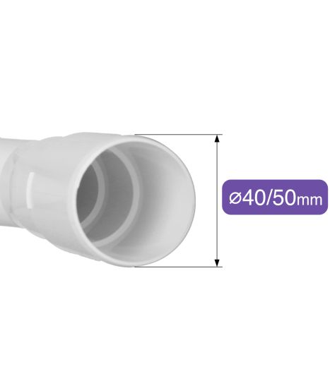 Syfon jest wyposażony w uniwersalne kolanko przyłączeniowe, co ułatwia montaż w standardowych systemach kanalizacyjnych. To rozwiązanie umożliwia łatwą instalację syfonu zarówno w "nowym budownictwie" z rurami odpływowymi o średnicy 50 mm, jak i w starszych konstrukcjach, gdzie dominują rury o średnicy 40 mm.
