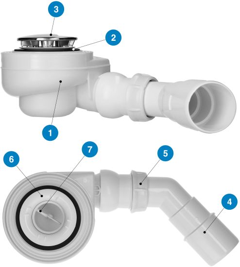 Syfon Radaway TB50 zbudowany jest z poniższych elementów: