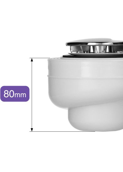 Syfon TB50 posiada wysokość montażową wynoszącą 80 mm. Jest to syfon o średniej wysokości montażowej, co czyni go odpowiednim wyborem dla szerokiego spektrum brodzików. Jego zastosowanie jest optymalne równo dla brodzików głębokich, o wysokości przekraczającej 20 cm, modeli kompaktowych o wysokości w zakresie 12-20 cm, a także brodzików płaskich, gdzie dostępne jest miejsce na wbudowanie syfonu w posadzkę.