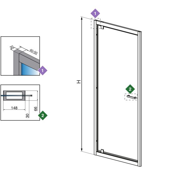 | Szerokość wnęki : | 685-710 mm, 785-810 mm, 885-910 mm, 985-1010 mm |