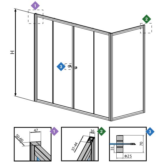 | Szerokość ścianki drzwi (C1): | 318-328 mm, 343-353 mm, 368-378 mm, 393-403 mm, 418-428 mm |