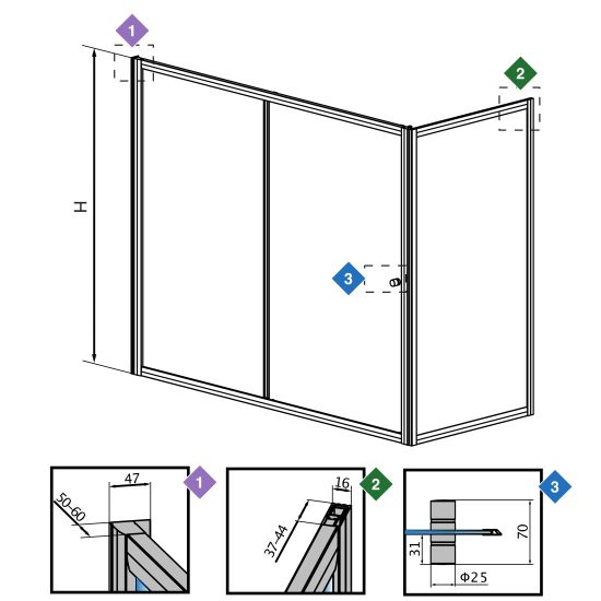 | Wymiar wanny (A2): | 650 mm, 700 mm, 750 mm, 800 mm |