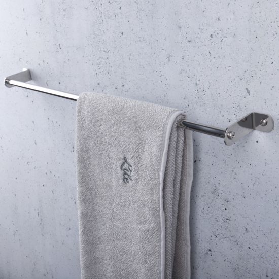 Nowoczesny reling na ręczniki wykonany z wysokiej jakości materiału odpornego na korozję.