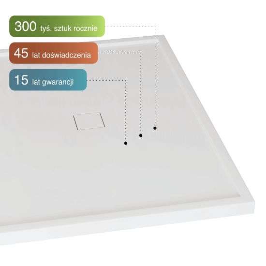 Brodziki wykonane z materiału Stratyl® każdego roku wybiera ponad 300 tys. zadowolonych użytkowników. Produkowane są od A do Z w Polsce przez polskiego producenta z ponad 45-letnim doświadczeniem produkcyjnym. Od dekad z powodzeniem sprawdzają się w łazienkach na całym świecie, każdego dnia potwierdzając swoją niezawodność i trwałość. Potwierdzeniem tego jest 15-letnia gwarancja producenta – najdłuższy okres gwarancyjny wśród brodzików prysznicowych.