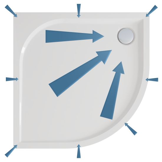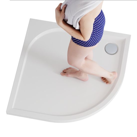 Brodzik został zaprojektowany z myślą o maksymalnej wygodzie i funkcjonalności codziennego użytkowania. Delikatne spady konstrukcyjne na powierzchni brodzika zapewniają szybkie i efektywne odprowadzanie wody do odpływu, zapobiegając jej gromadzeniu się na powierzchni. Precyzyjnie zaprojektowane nachylenie gwarantuje komfort natrysku bez wpływu na estetykę powierzchni — brodzik zachowuje elegancki, płaski wygląd. Delikatne spady występują także na krawędziach brodzika, na których wspiera się kabina prysznicowa, skutecznie chroniąc przed zatrzymywaniem się wody na styku elementów.