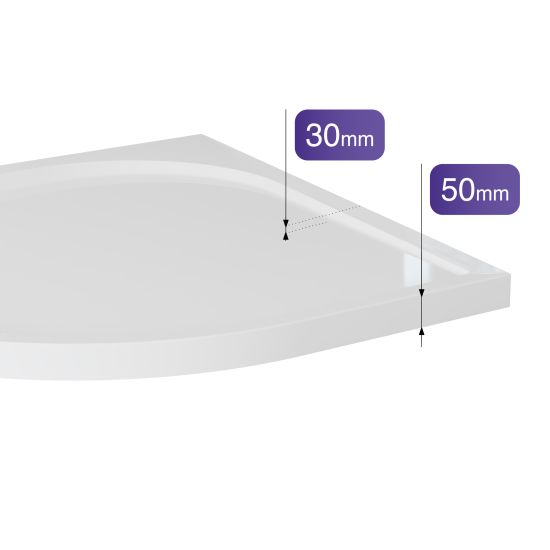 Brodzik Lumaro A łączy w sobie nowoczesny wygląd i codzienną funkcjonalność. Wysokość całkowita 50 mm zapewnia łatwe wejście do strefy prysznicowej i lekkość aranżacyjną nawet w niewielkich łazienkach. Głębokość brodzika 30 mm gwarantuje wygodne korzystanie z natrysku, skutecznie chroniąc przed przelaniem się wody. Standardowa średnica odpływu 90 mm umożliwia szybkie i sprawne odprowadzanie wody oraz stosowanie syfonów z mechanizmem łatwego czyszczenia od góry. Płaska konstrukcja brodzika to idealne połączenie estetyki i komfortu użytkowania na co dzień.