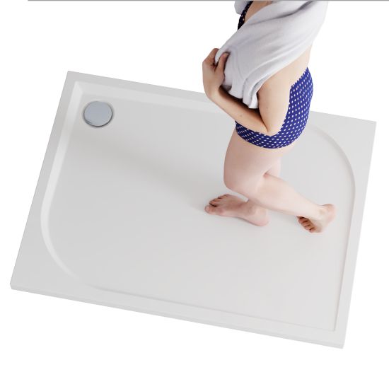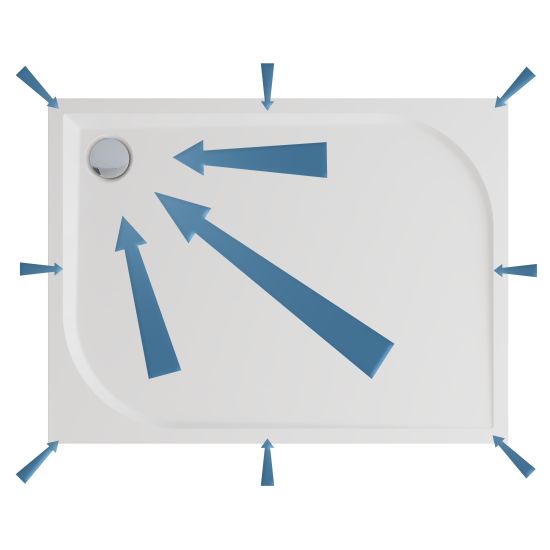 Brodzik został zaprojektowany z myślą o maksymalnej wygodzie i funkcjonalności codziennego użytkowania. Delikatne spady konstrukcyjne na powierzchni brodzika zapewniają szybkie i efektywne odprowadzanie wody do odpływu, zapobiegając jej gromadzeniu się na powierzchni. Precyzyjnie zaprojektowane nachylenie gwarantuje komfort natrysku bez wpływu na estetykę powierzchni — brodzik zachowuje elegancki, płaski wygląd. Delikatne spady występują także na krawędziach brodzika, na których wspiera się kabina prysznicowa, skutecznie chroniąc przed zatrzymywaniem się wody na styku elementów.