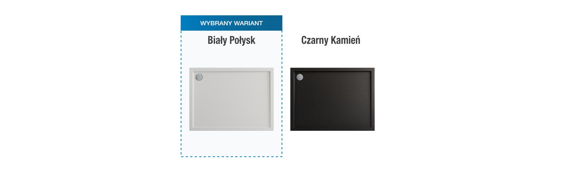 Brodzik Schedline Moden D dostępny jest - w zależności od rozmiaru - w dwóch najczęściej wybieranych wariantach kolorystycznych: klasycznym białym połysku (RAL9003) oraz coraz popularniejszym czarnym (RAL9004) wykończeniu z elegancką strukturą kamienia.