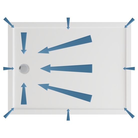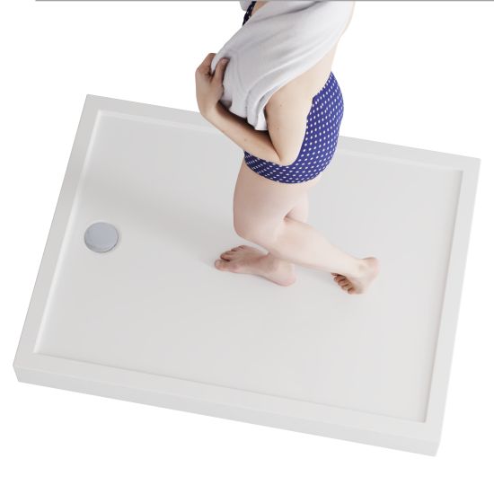 Brodzik został zaprojektowany z myślą o maksymalnej wygodzie i funkcjonalności codziennego użytkowania. Delikatne spady konstrukcyjne na powierzchni brodzika zapewniają szybkie i efektywne odprowadzanie wody do odpływu, zapobiegając jej gromadzeniu się na powierzchni. Precyzyjnie zaprojektowane nachylenie gwarantuje komfort natrysku bez wpływu na estetykę powierzchni — brodzik zachowuje elegancki, płaski wygląd. Delikatne spady występują także na krawędziach brodzika, na których wspiera się kabina prysznicowa, skutecznie chroniąc przed zatrzymywaniem się wody na styku elementów.