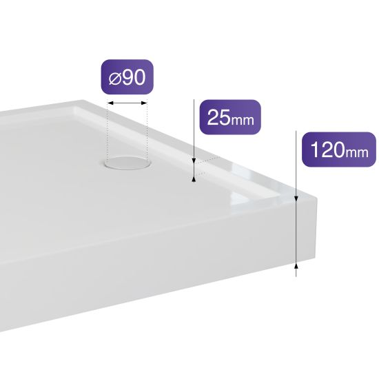 Brodzik Moden F to solidne i uniwersalne rozwiązanie dla wszystkich, którzy cenią sobie niezawodność i komfort montażowy. Wysokość całkowita 120 mm zapewnia możliwość podłączenia syfonu od brodzika do pionu kanalizacyjnego bez konieczności ingerencji w posadzkę. To nie tylko przyśpieszenie montażu samego brodzika, ale również ograniczenie do minimum kosztów montażowych. Głębokość brodzika 25 mm zapewnia wygodne korzystanie nawet przy intensywnym natrysku, minimalizując ryzyko przelania się wody. Standardowa średnica odpływu 90 mm gwarantuje szybkie i efektywne odprowadzanie wody oraz możliwość stosowania syfonów z mechanizmem łatwego czyszczenia od góry.