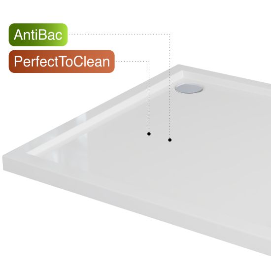 1. Warstwa Antibac - ochrona mikrobiologiczna - niewidoczna gołym okiem, ale aktywna w działaniu. Hamuje rozwój bakterii i drobnoustrojów na powierzchni brodzika, podnosząc poziom higieny podczas codziennego użytkowania.