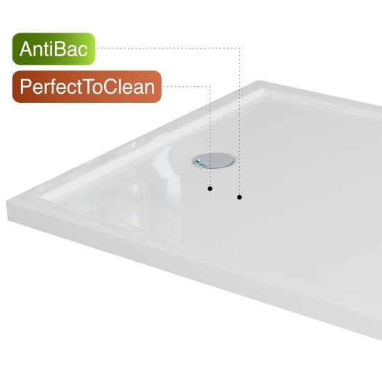 1. Warstwa Antibac - ochrona mikrobiologiczna - niewidoczna gołym okiem, ale aktywna w działaniu. Hamuje rozwój bakterii i drobnoustrojów na powierzchni brodzika, podnosząc poziom higieny podczas codziennego użytkowania.
