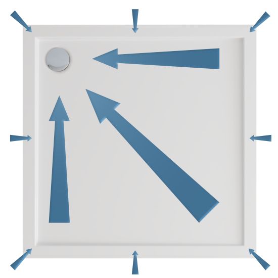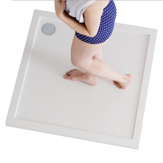 Brodzik został zaprojektowany z myślą o maksymalnej wygodzie i funkcjonalności codziennego użytkowania. Delikatne spady konstrukcyjne na powierzchni brodzika zapewniają szybkie i efektywne odprowadzanie wody do odpływu, zapobiegając jej gromadzeniu się na powierzchni. Precyzyjnie zaprojektowane nachylenie gwarantuje komfort natrysku bez wpływu na estetykę powierzchni — brodzik zachowuje elegancki, płaski wygląd. Delikatne spady występują także na krawędziach brodzika, na których wspiera się kabina prysznicowa, skutecznie chroniąc przed zatrzymywaniem się wody na styku elementów.