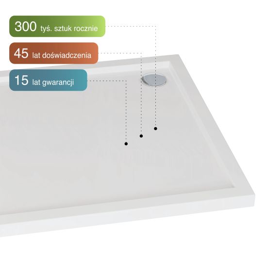 Brodziki wykonane z materiału Stratyl® każdego roku wybiera ponad 300 tys. zadowolonych użytkowników. Produkowane są od A do Z w Polsce przez polskiego producenta z ponad 45-letnim doświadczeniem produkcyjnym. Od dekad z powodzeniem sprawdzają się w łazienkach na całym świecie, każdego dnia potwierdzając swoją niezawodność i trwałość. Potwierdzeniem tego jest 15-letnia gwarancja producenta – najdłuższy okres gwarancyjny wśród brodzików prysznicowych.
