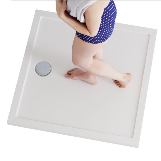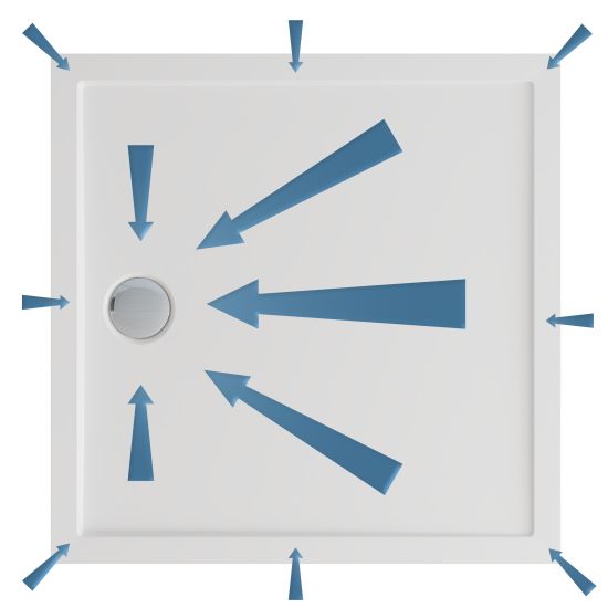 Brodzik został zaprojektowany z myślą o maksymalnej wygodzie i funkcjonalności codziennego użytkowania. Delikatne spady konstrukcyjne na powierzchni brodzika zapewniają szybkie i efektywne odprowadzanie wody do odpływu, zapobiegając jej gromadzeniu się na powierzchni. Precyzyjnie zaprojektowane nachylenie gwarantuje komfort natrysku bez wpływu na estetykę powierzchni — brodzik zachowuje elegancki, płaski wygląd. Delikatne spady występują także na krawędziach brodzika, na których wspiera się kabina prysznicowa, skutecznie chroniąc przed zatrzymywaniem się wody na styku elementów.