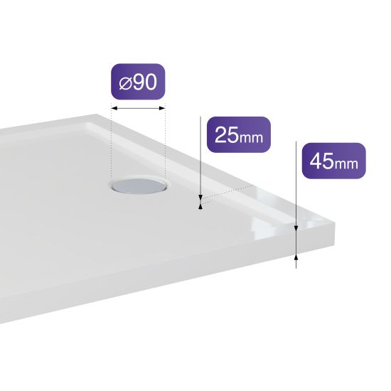 Brodzik Nivaro Ultra C2 łączy w sobie nowoczesny wygląd i codzienną funkcjonalność. Wysokość całkowita 50, 45 mm zapewnia łatwe wejście do strefy prysznicowej i lekkość aranżacyjną nawet w niewielkich łazienkach. Głębokość brodzika 25 mm gwarantuje wygodne korzystanie z natrysku, skutecznie chroniąc przed przelaniem się wody. Standardowa średnica odpływu 90 mm umożliwia szybkie i sprawne odprowadzanie wody oraz stosowanie syfonów z mechanizmem łatwego czyszczenia od góry. Płaska konstrukcja brodzika to idealne połączenie estetyki i komfortu użytkowania na co dzień.
