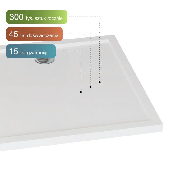 Brodziki wykonane z materiału Stratyl® każdego roku wybiera ponad 300 tys. zadowolonych użytkowników. Produkowane są od A do Z w Polsce przez polskiego producenta z ponad 45-letnim doświadczeniem produkcyjnym. Od dekad z powodzeniem sprawdzają się w łazienkach na całym świecie, każdego dnia potwierdzając swoją niezawodność i trwałość. Potwierdzeniem tego jest 15-letnia gwarancja producenta – najdłuższy okres gwarancyjny wśród brodzików prysznicowych.